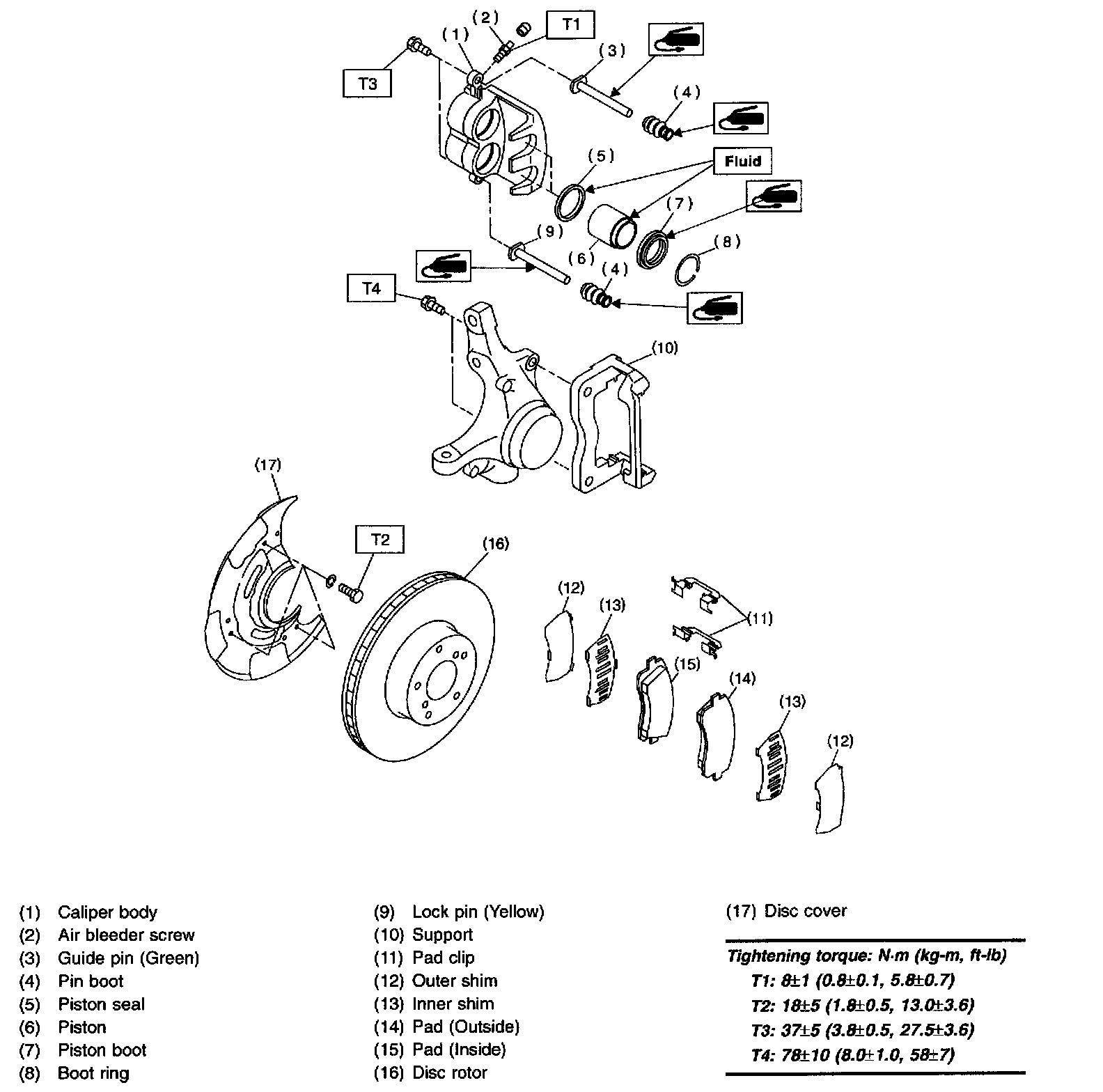 6. Clean mud and foreign particles from caliper body assembly and support.