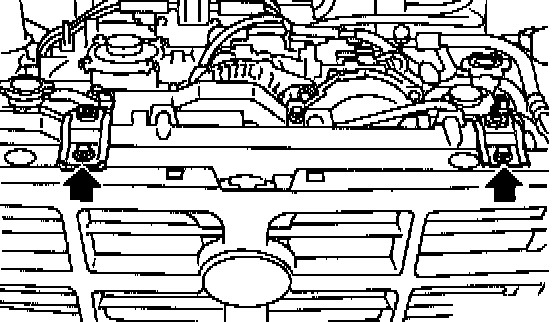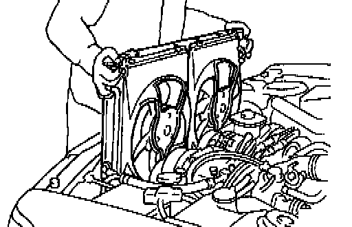 NOTE: Fit cushion on lower side of radiator into holes on body side.