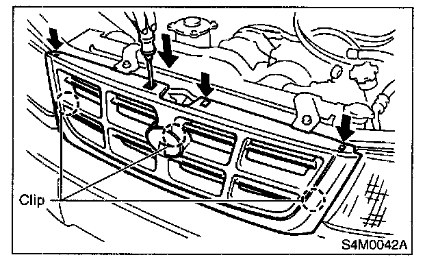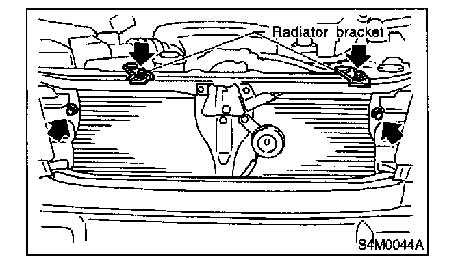 NOTE: After installing condenser, ensure that guide on lower side of condenser is inserted into hole in radiator panel. Tighten attaching bolts.