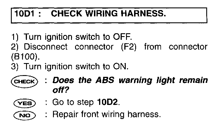 NOTE: When the ABS warning light is OFF and "NO TROUBLE CODE" is displayed on the select monitor, the system is in normal condition.