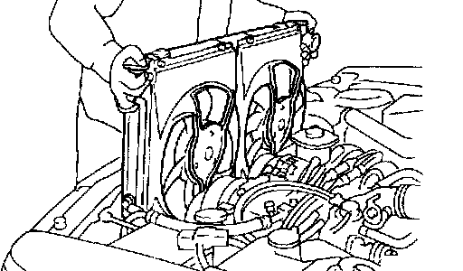 A. REMOVALWARNING: The radiator is pressurized. Wait until engine cools down before working on the radiator.