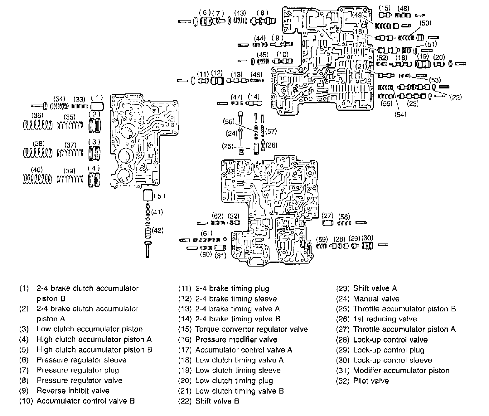A: PRECAUTIONThe control valve is composed of parts which are accurately machined to a high degree and should be handled carefully during disassembly and assembly. As these parts are similar in shape, they should be arranged in neat order on a table after disassembly so that they can be easily installed to their original positions. Spring loaded parts should be also handled carefully, as springs may jump out of place when the parts are disassembled removed. Extreme care should be taken so as to drop valves on the floor. Before assembling, the parts and valves should be dipped in a container filled with the ATF. Make sure that the valves are clean and free from any foreign material before assembly. Torque specifications should also be observed.