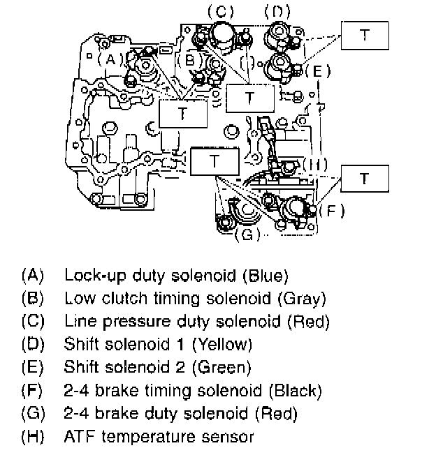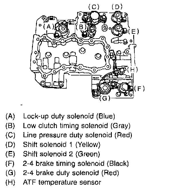 2) Remove the duty solenoid S, solenoids and sensor from the lower valve body.