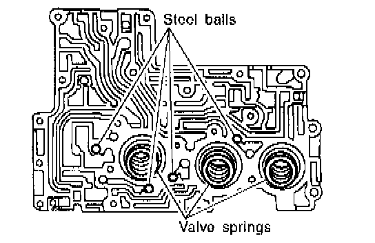1) Install accumulator pistons, valve springs and steel balls to upper valve body.