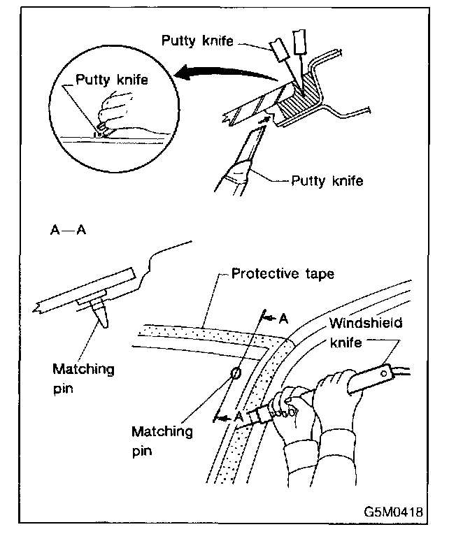 1. After cutting layer of adhesive, remove dam rubber remaining on body.