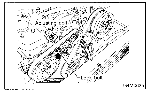 2. Turn adjusting bolt and remove V-belt.