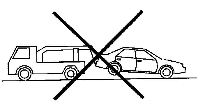 - Do not tow vehicle with rear wheels raised under any circumstances since this will damage bumper.