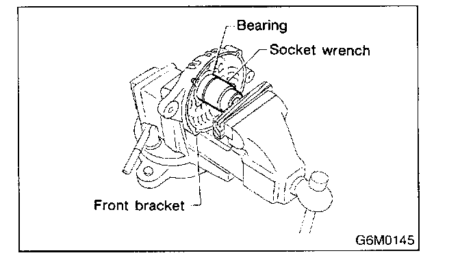 2. Closely install a fit tool on the bearing inner race. Press the bearing down out of front bracket with a hand press or vise. A socket wrench can serve as the tool.