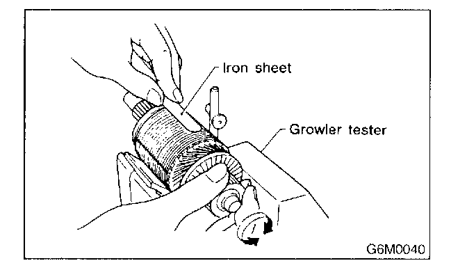 Using circuit tester, touch one probe to the commutator segment and the other to shaft. There should be no continuity. If there is a continuity, armature is grounded.