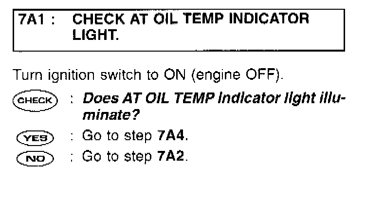 7A1: CHECK A/T OIL TEMP INDICATOR LIGHT.