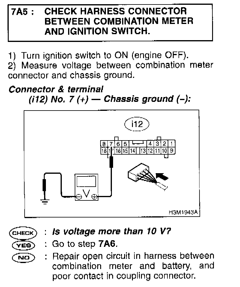 7A5: CHECK HARNESS CONNECTOR BETWEEN COMBINATION METER AND IGNITION SWITCH.