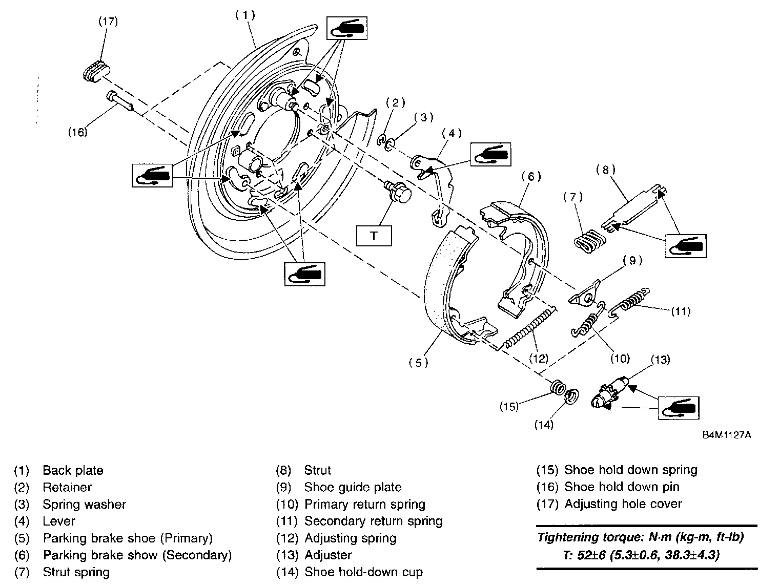 1. Apply brake grease to the following places.