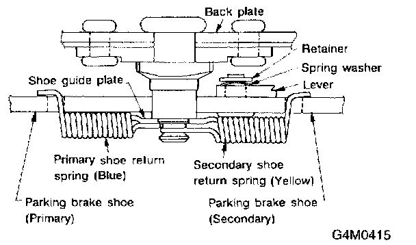 CAUTION: After replacing parking brake lining, be sure to drive vehicle for "break-in" purposes.