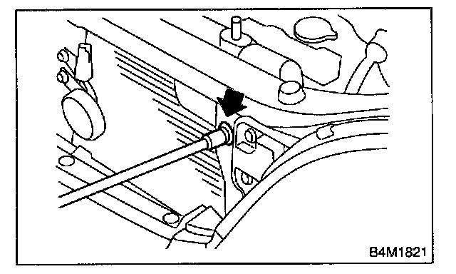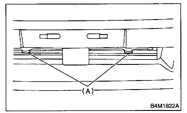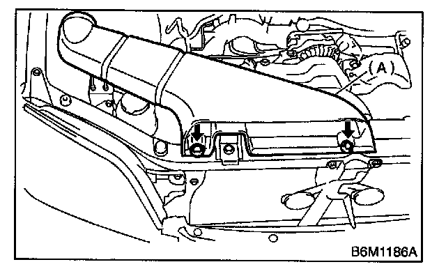 NOTE: After installing condenser, ensure that guide (A) on lower side of condenser is inserted into hole in radiator panel. Tighten attaching bolts.