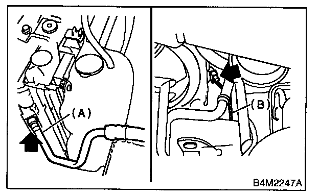 4. Disconnect high-pressure hose (A) and high-pressure pipe (B) from condenser.