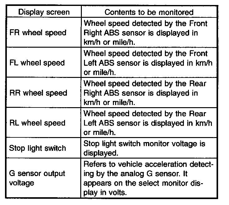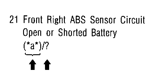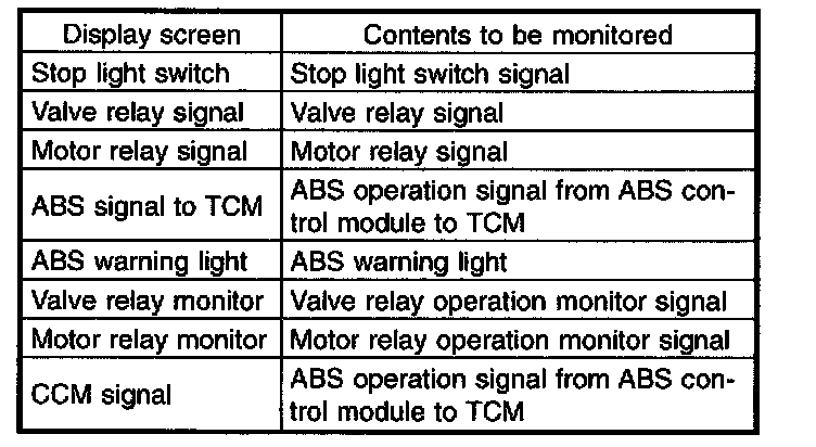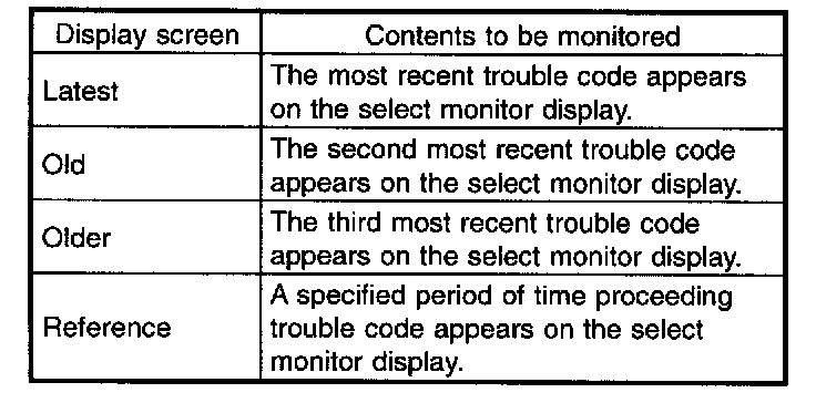 - If a particular trouble code is not properly stored in memory (due to a drop in ABSCM & H/U power supply, etc.) when a problem occurs, the trouble code, followed by a question mark "?", appears on the select monitor display. This shows it may be an unreliable reading.
