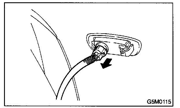5. Remove bolts which secure fender to radiator panel and turn signal light connector.