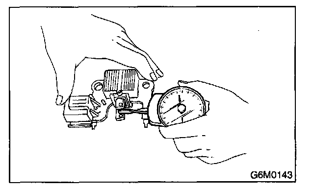 CAUTION: Never use a megger tester measuring use for high voltage or any other similar measure for this test; otherwise, the diodes may be damaged.