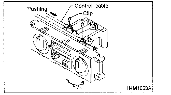 2. Install control cable to lever. While pushing outer cable, secure control cable with clip.