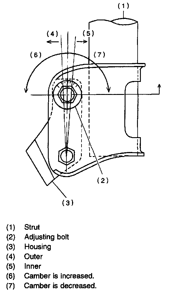 2) Turn camber adjusting bolt so that camber is set at the specification.