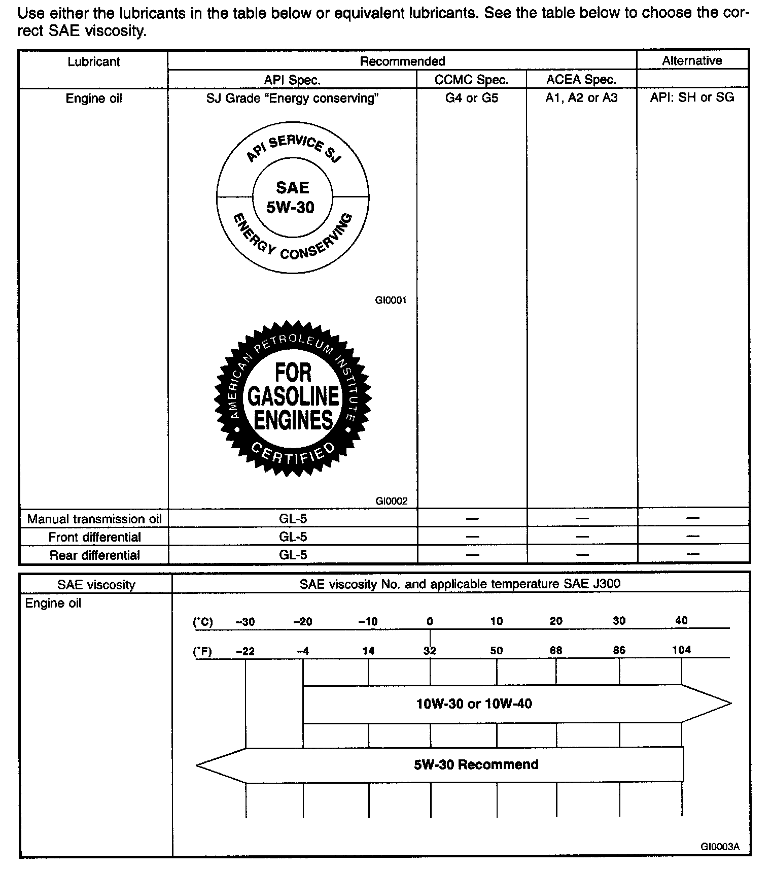 Always use a gasoline of the same or higher octane value than specified in the owner's manual. Ignoring the specifications below will result in damage or poor operation of the engine and fuel injection system. Use the specified gasoline to correct performance.