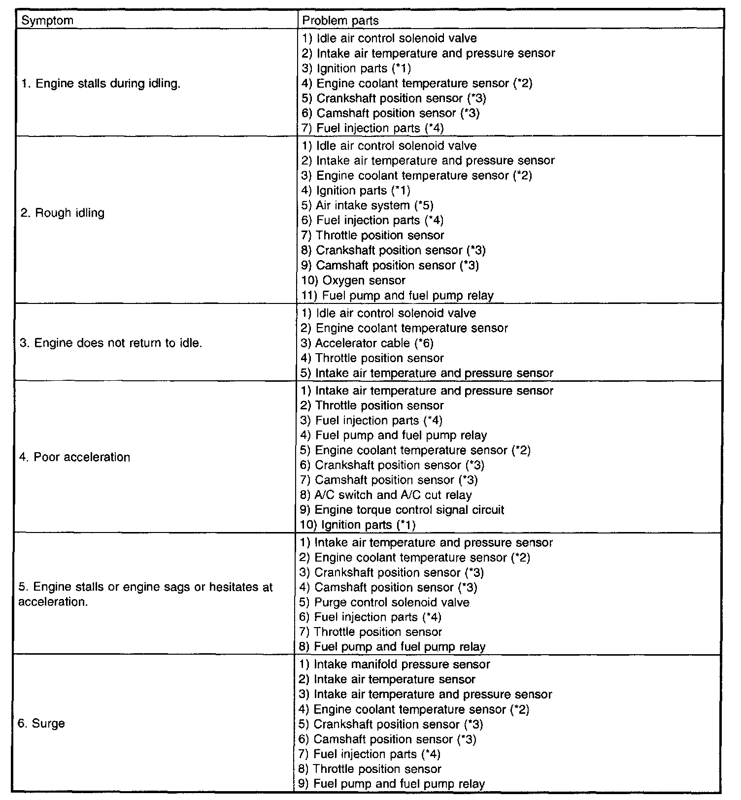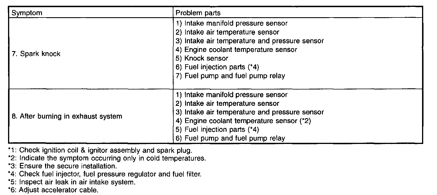Malfunction of parts other than those listed is also possible.