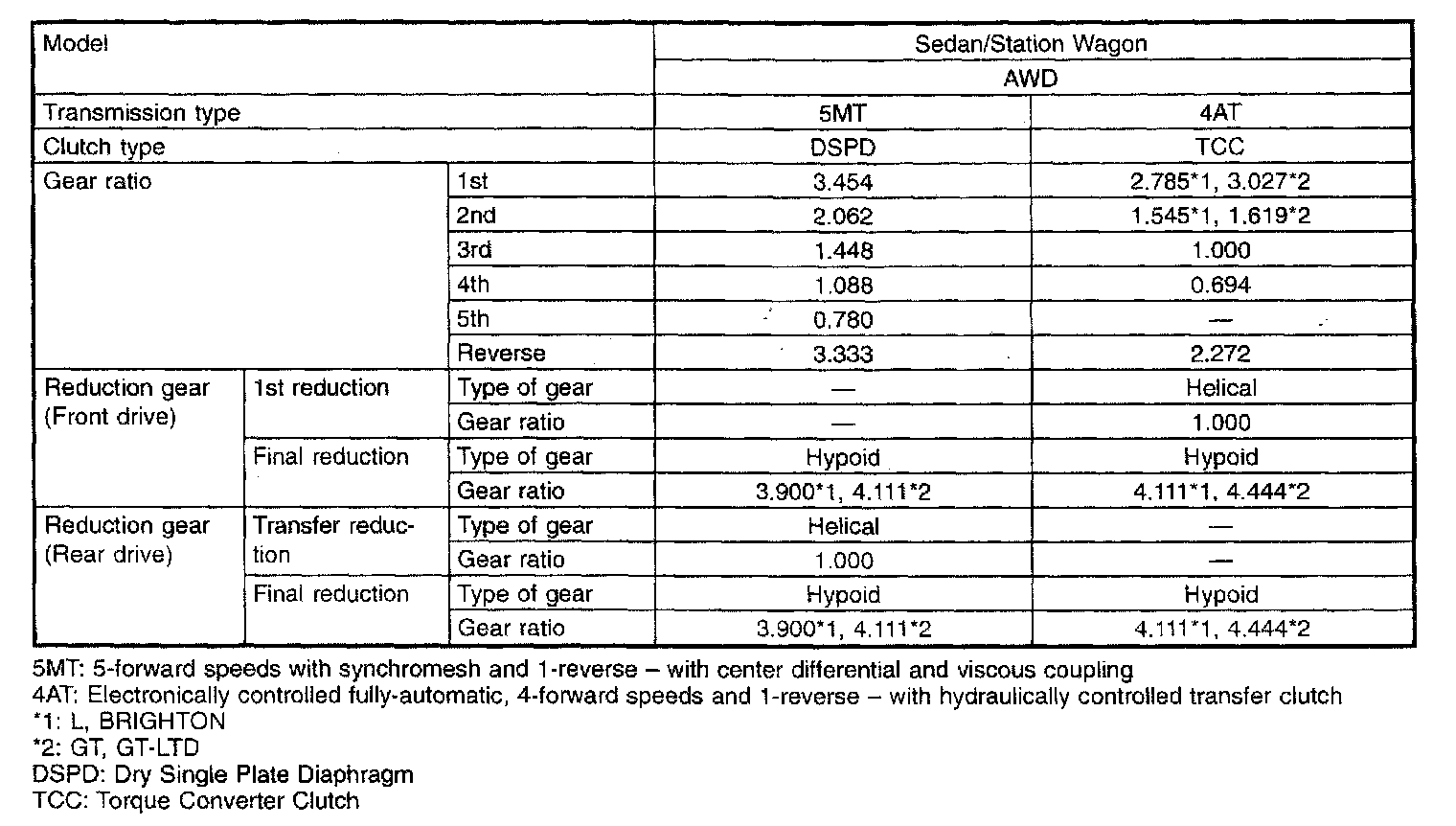 5-spd M/T/4-spd A/T, Transmission/Reduction Gear Ratios:
