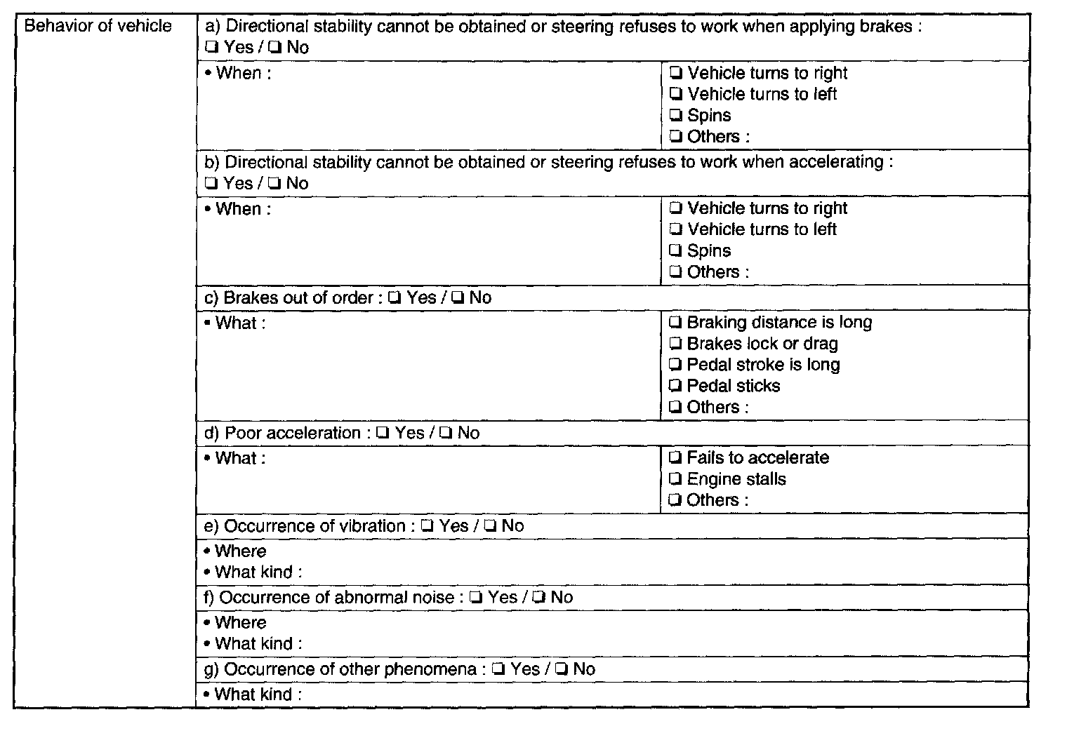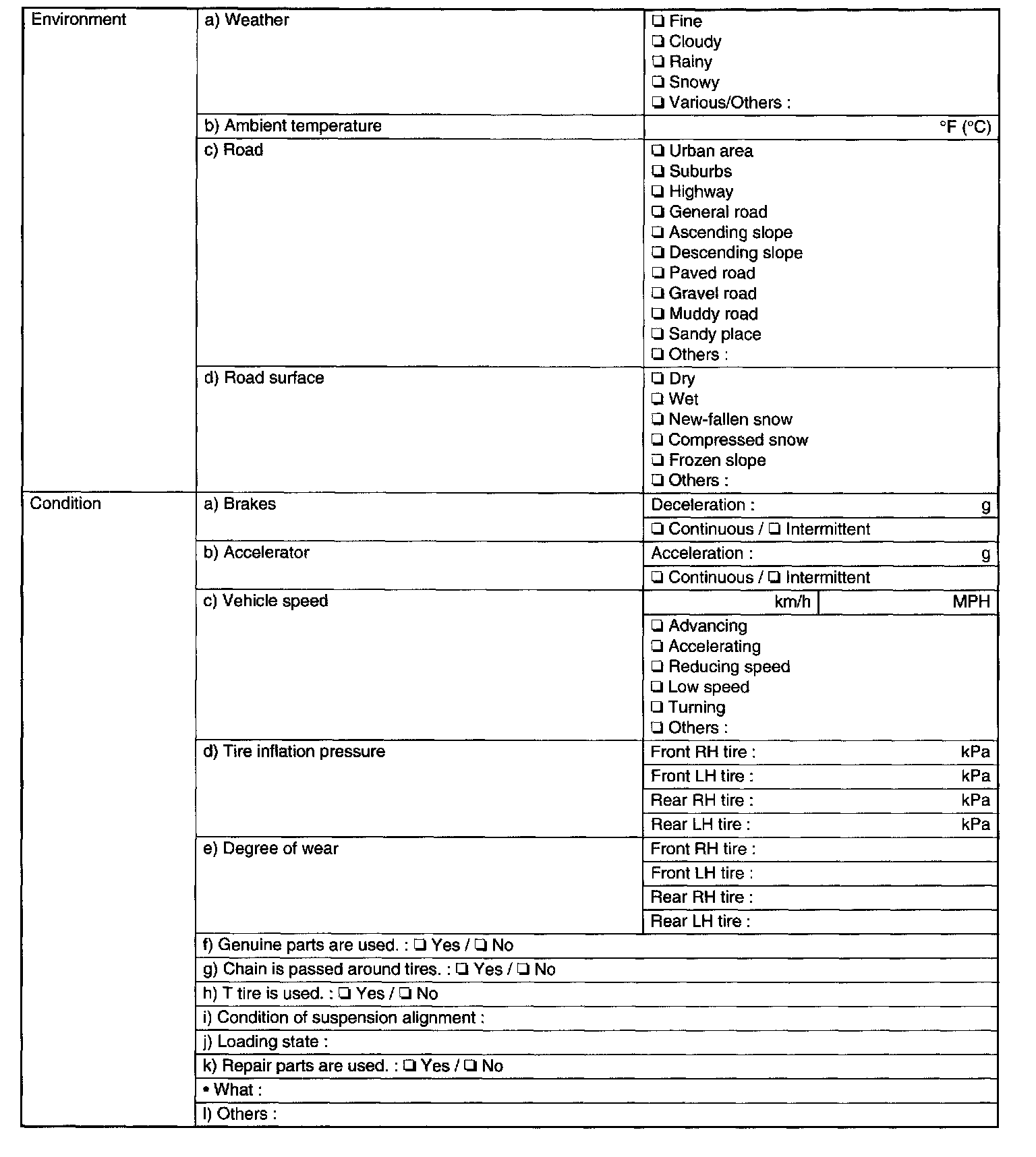 Check the following items about the vehicle's state.