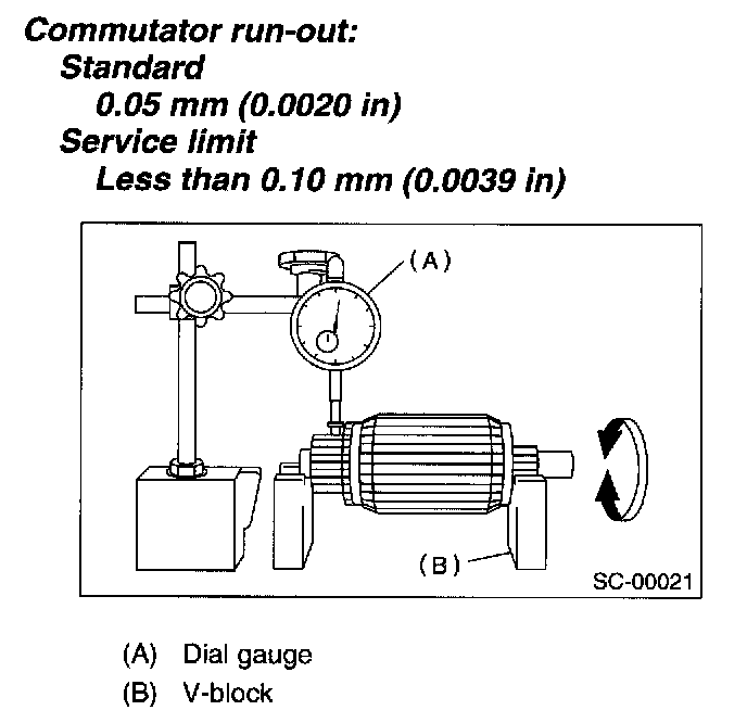 Check the commutator run-out, and then replace if it exceeds the limit.