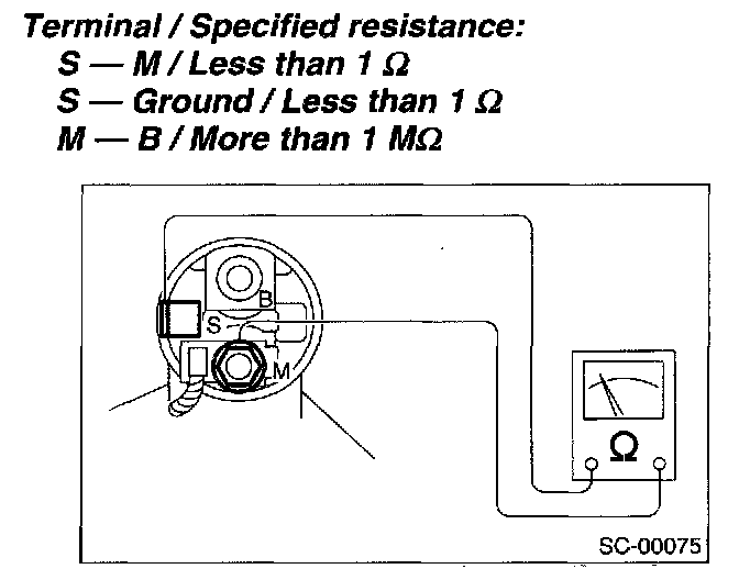 Be sure there is continuity between the terminals S and M, and between terminal S and ground. Use a circuit tester (set in "ohm").