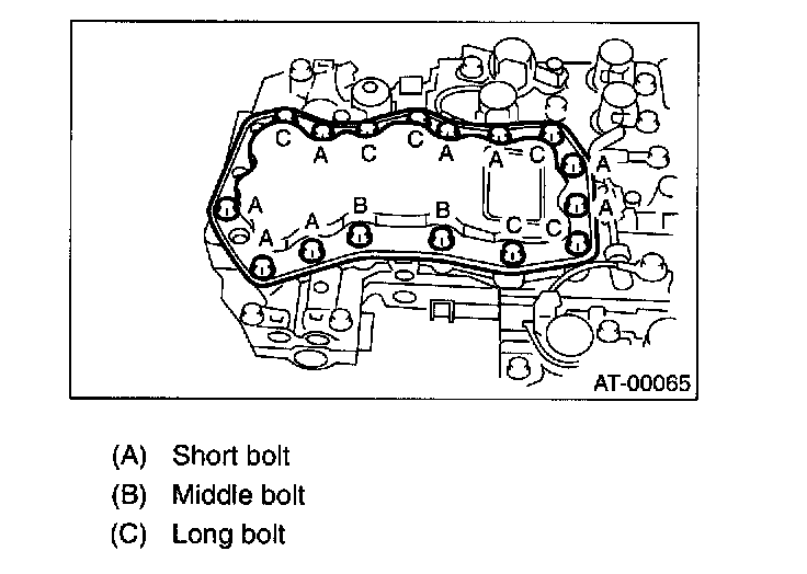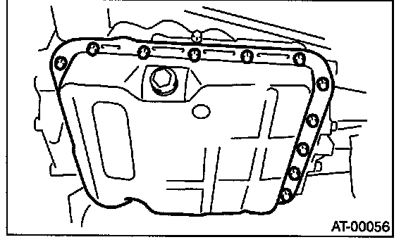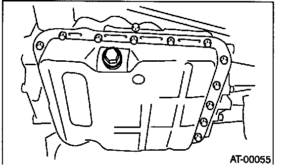 10) Remove the liquid gasket completely from oil pan and transmission case.