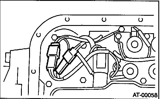 7. Disconnect the duty solenoids and ATF temperature sensor connectors. Remove the connectors from clip and disconnect the connectors.