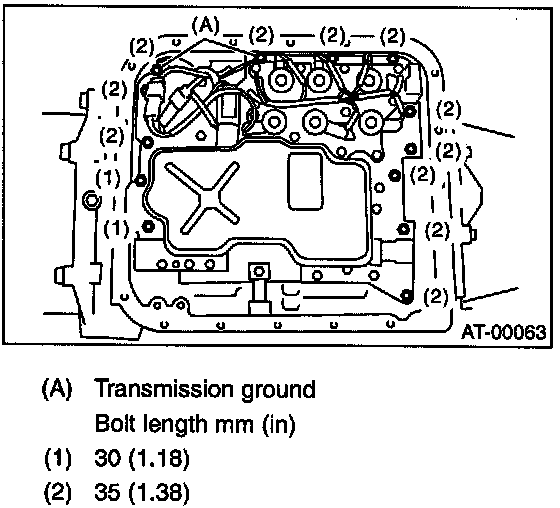 2) Install the control valve body and ground cable to transmission by tightening bolts evenly.