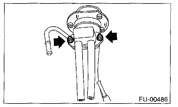 3. Remove nut which holds evaporation pipe assembly on fuel filler pipe.