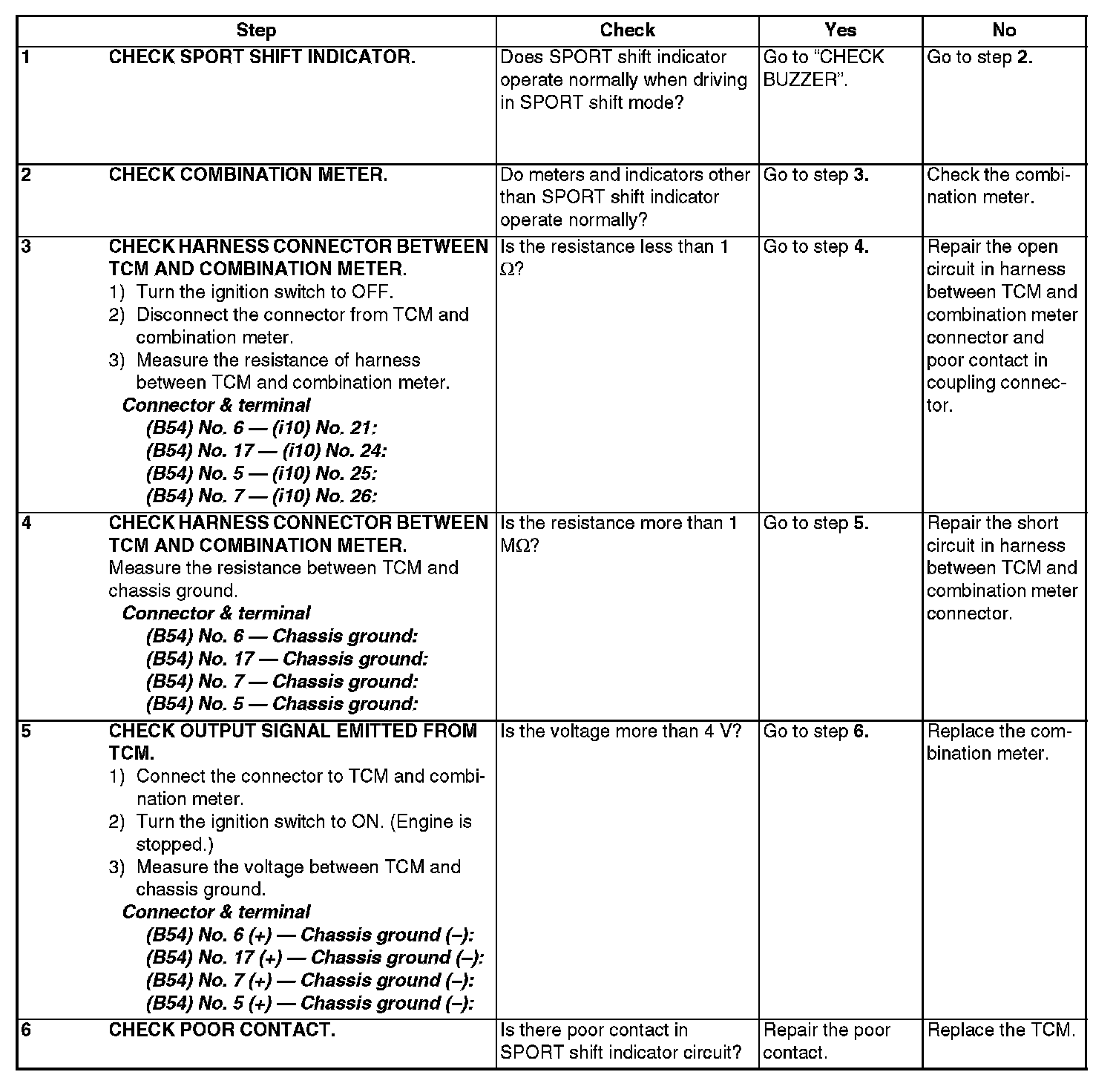 CHECK SPORT SHIFT INDICATORSteps 1-6: