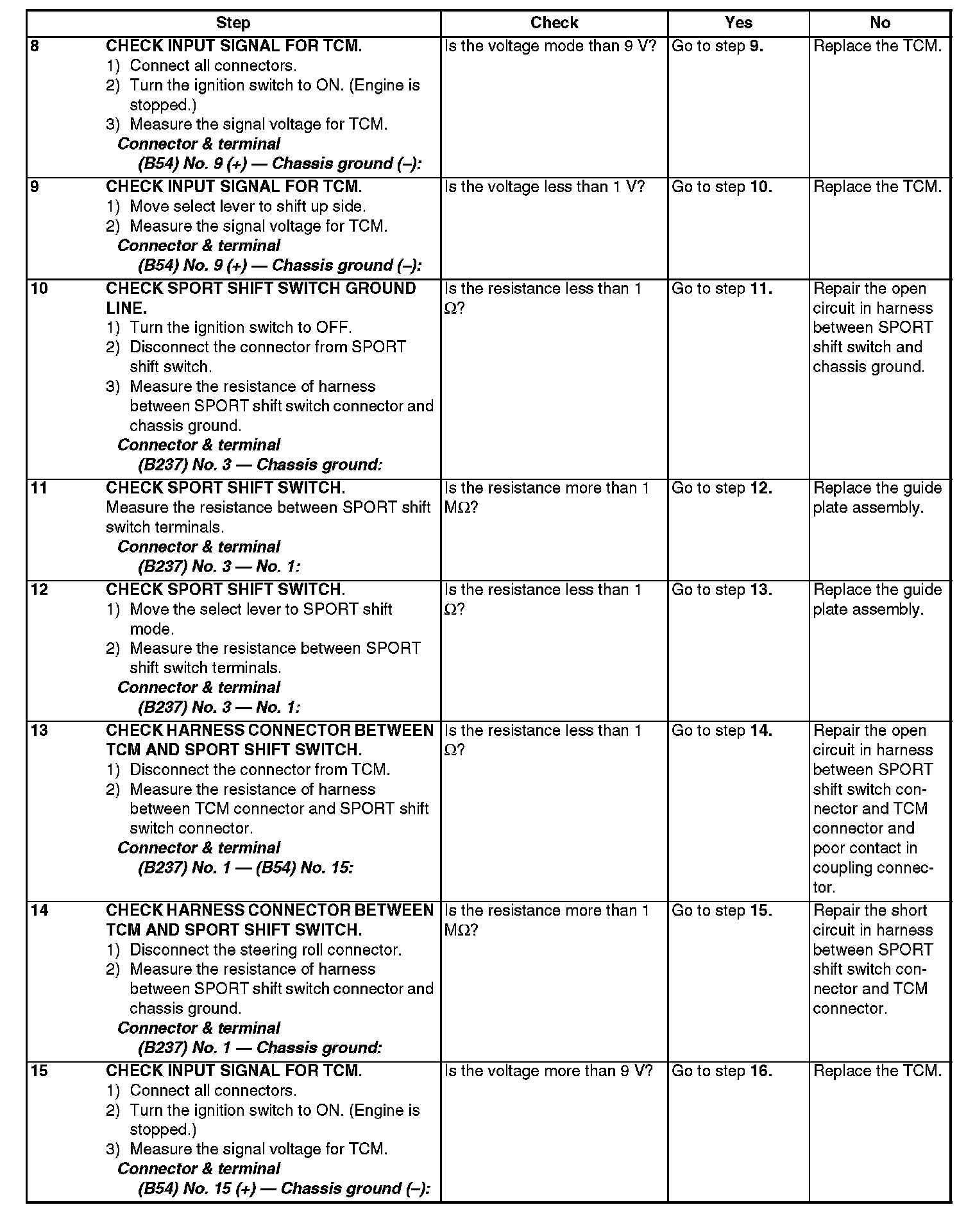 SPORT shift switch input signal circuit is open or shorted.