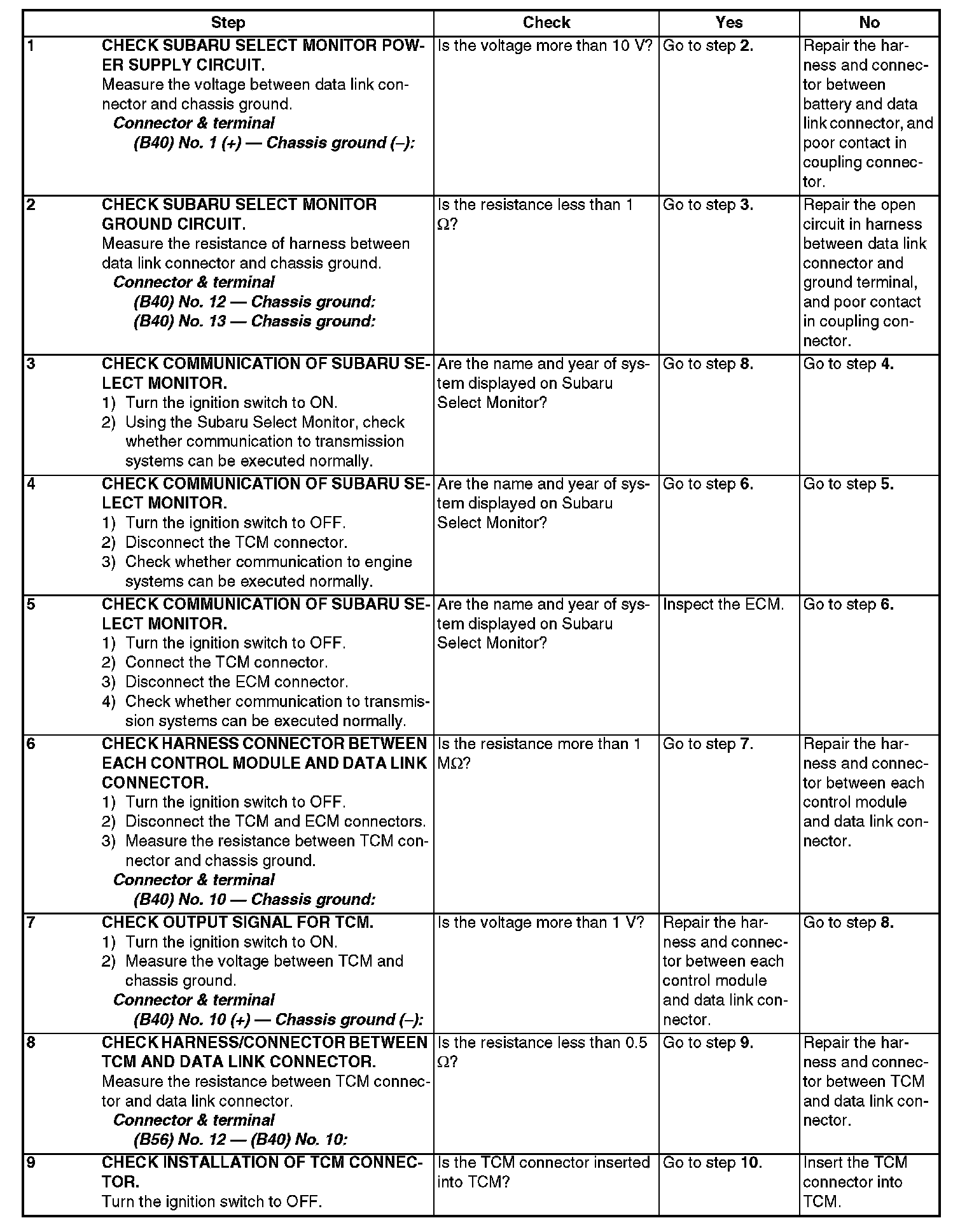 Diagnostic Procedure for Subaru Select Monitor Communication