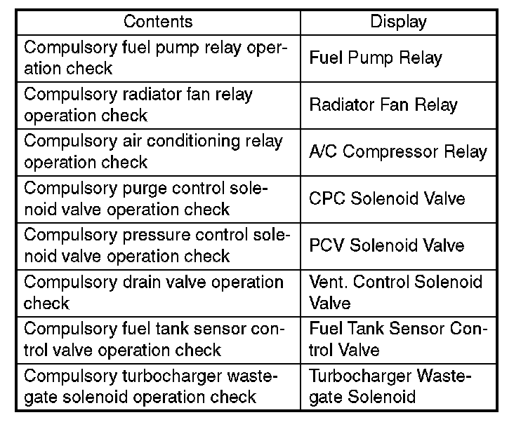 13. Pressing the [NO] key completes the compulsory operation check mode. The display will then return to the �Actuator ON/OFF Operation� screen.