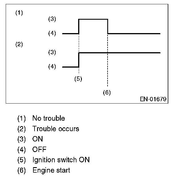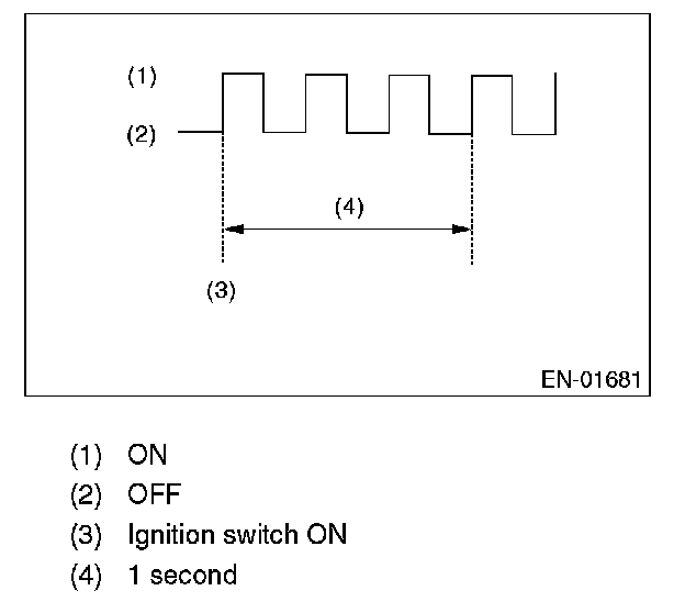 4. When the ignition switch is turned to ON (engine off) or to "START" with test mode connector connected, the malfunction indicator light blinks at a cycle of 3 Hz.