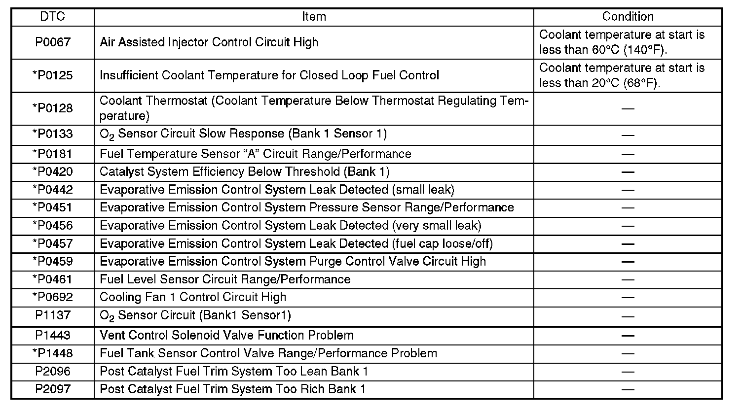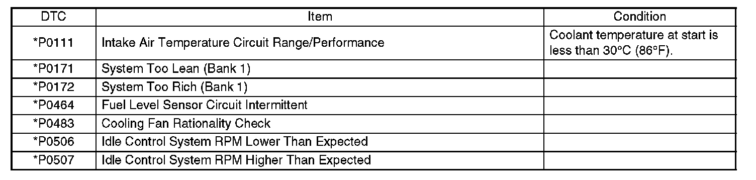 - Carry out the diagnosis which is marked* on DTC twice, then, after finishing first diagnosis, stop the engine and do second time at the same condition.