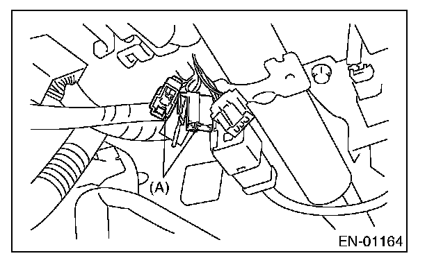 6. Connect the test mode connector (A) at the lower portion of instrument panel (on driver's side).