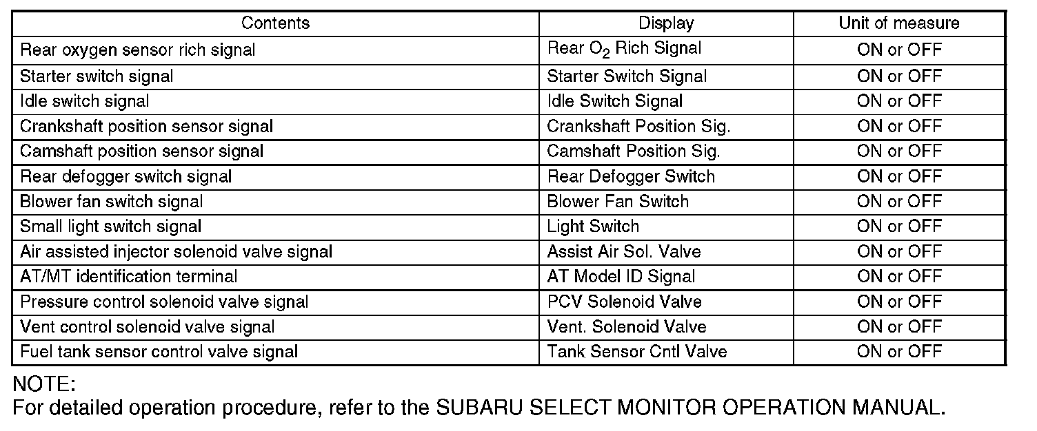 CAUTION: Do not connect scan tools except for Subaru Select Monitor and OBD-II general scan tool.