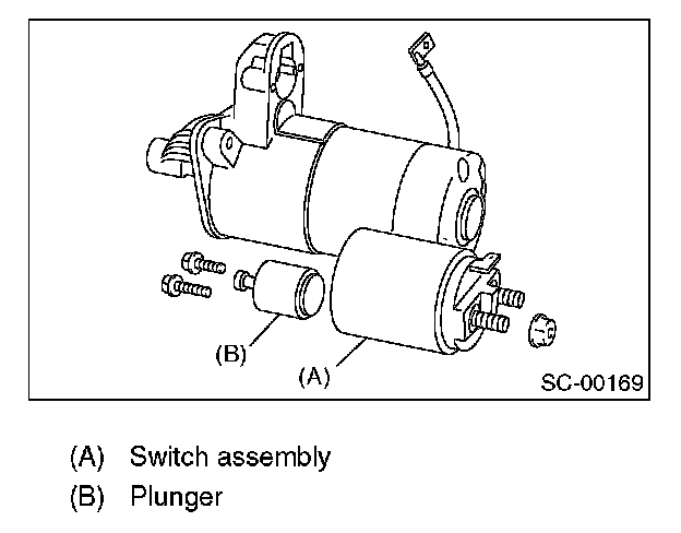 2. Remove the bolts which hold the switch assembly, and then remove switch assembly, plunger and plunger spring from starter as a unit.