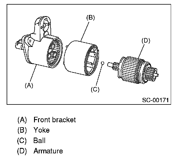 4. Remove the armature and yoke from front bracket. The ball used as a bearing will come off from the armature end.