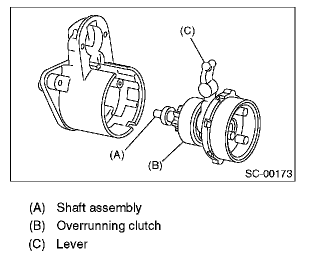 6. Remove the shaft assembly and overrunning clutch as a unit.