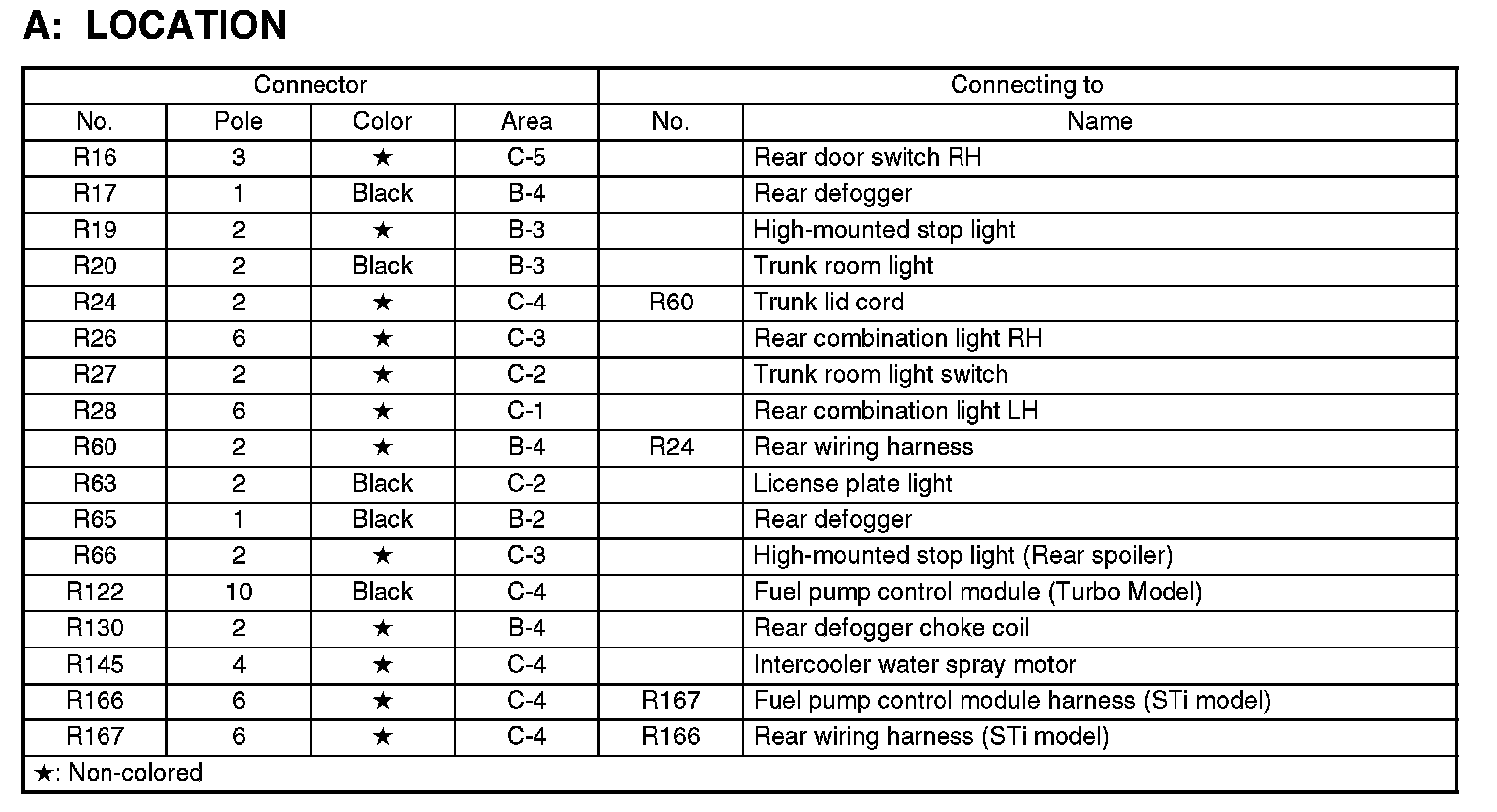 REAR WIRING HARNESS AND TRUNK LID CORD
