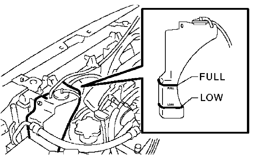 5. If the engine coolant level drops from Full level of reservoir tank, add engine coolant to Full level.