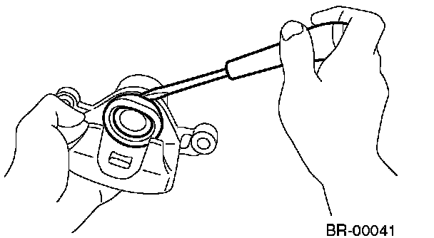 2. Apply a coat of brake fluid to piston seal and fit piston seal in groove on caliper body.
