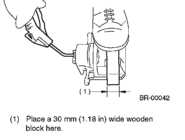 ^ Place a wooden block as shown in Figure to prevent damage to piston.