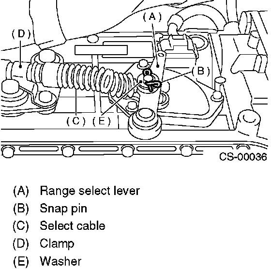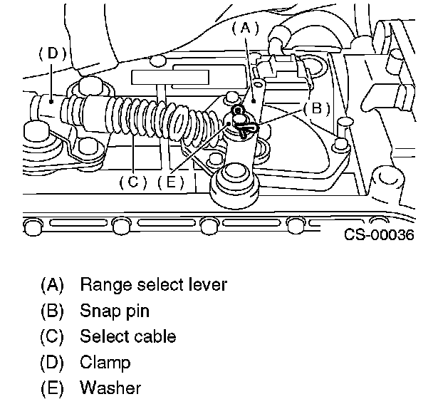 8. Remove the snap pin from range select lever.
